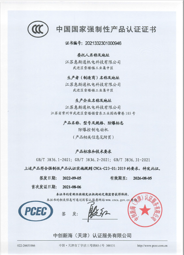 防爆控制电机CCC证书
