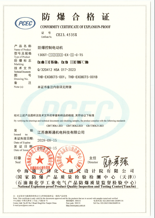 110基座ⅡCT5防爆控制电动机证书